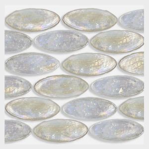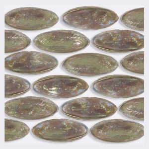Unusual oval shapes characterize the ambiance with iridescences and shades. This mosaic tile remembers the ’70 when organic shapes were preferred over standard ones. A touch of modernism for every creative design.