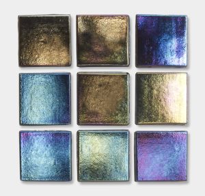 Squared shape (2×2 cm | 3/4″x3/4″) full of iridescences. Perfect for wet areas were the design require luminous effects. Bright colors and bold ones can be mixed to obtain infinite patterns.